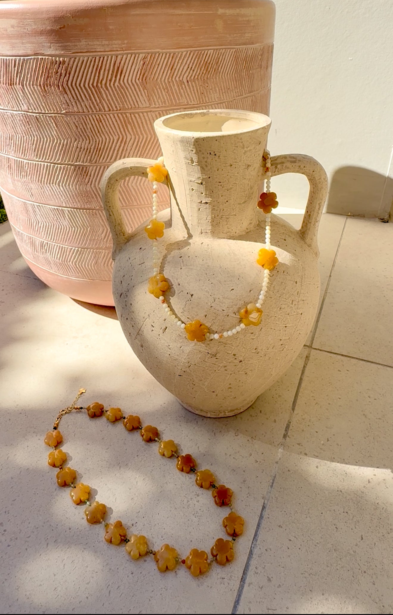 Each piece is handmade using high quality materials including freshwater pearls, premium stone and glass beads and a mix of 14k and 18k gold filled or plated findings, all of which are delicate and deserve gentle care.