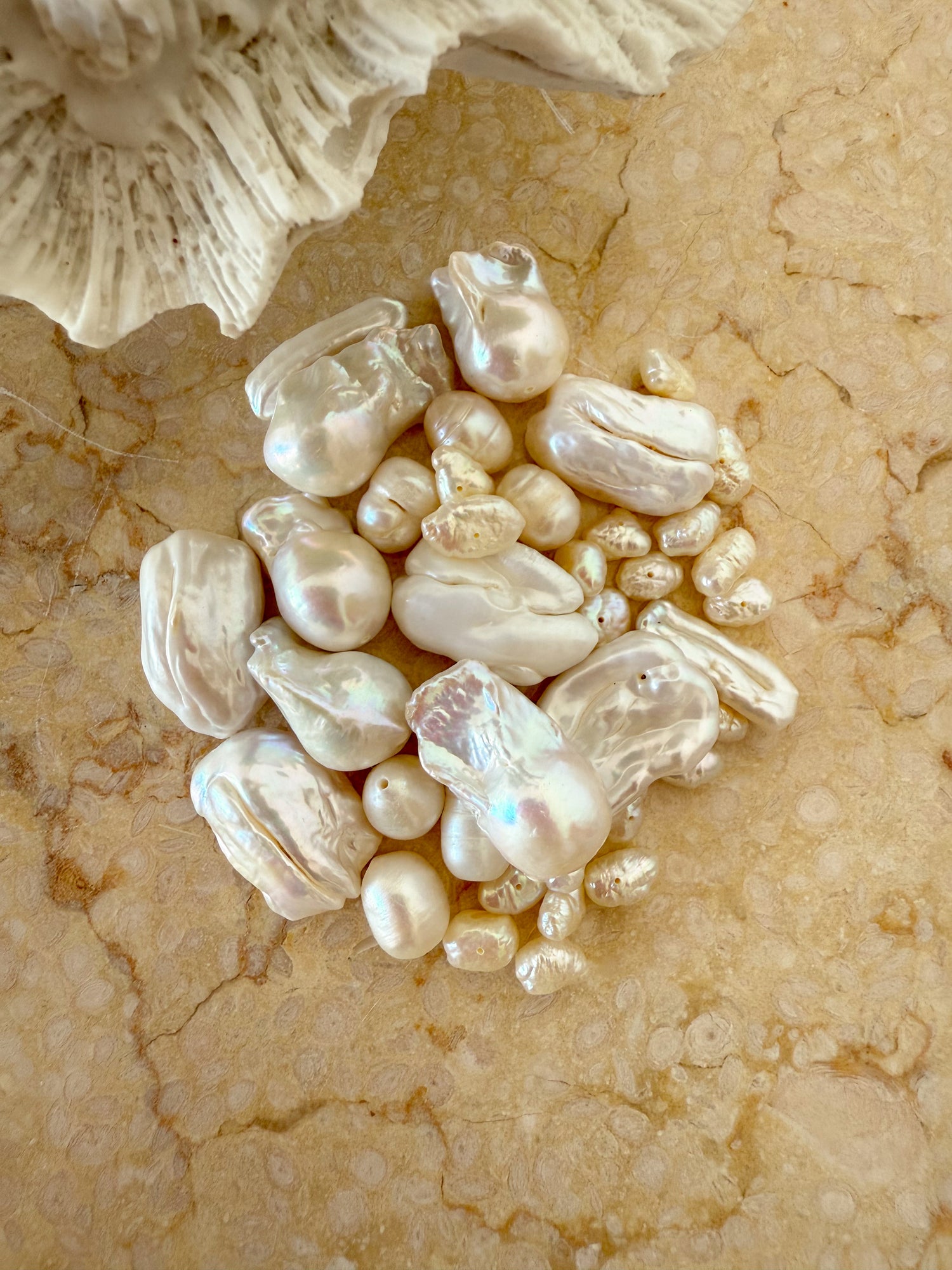 Freshwater pearls are formed naturally in lakes and rivers, giving them their soft shape and subtle glow. Unlike perfectly round pearls, these are known for their organic curves and gentle texture, no two are the same. A reflection of the natural world they come from.