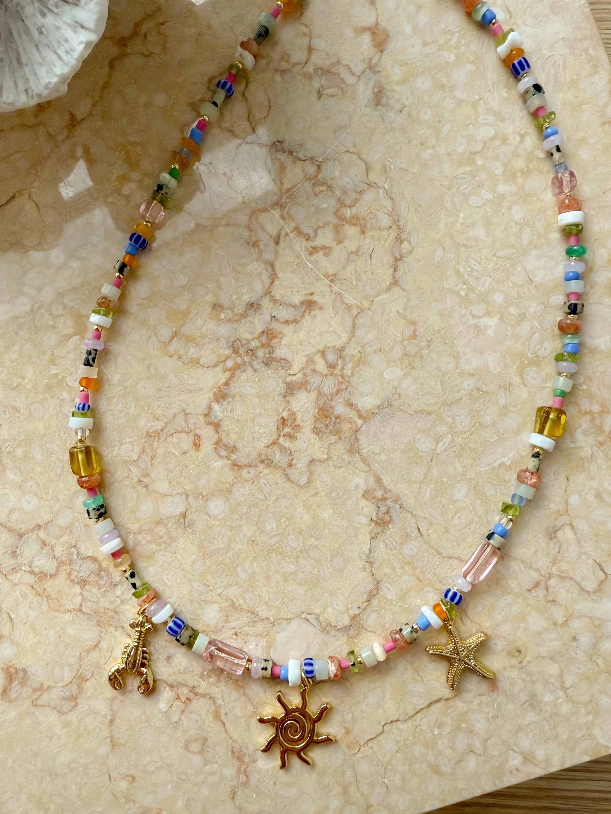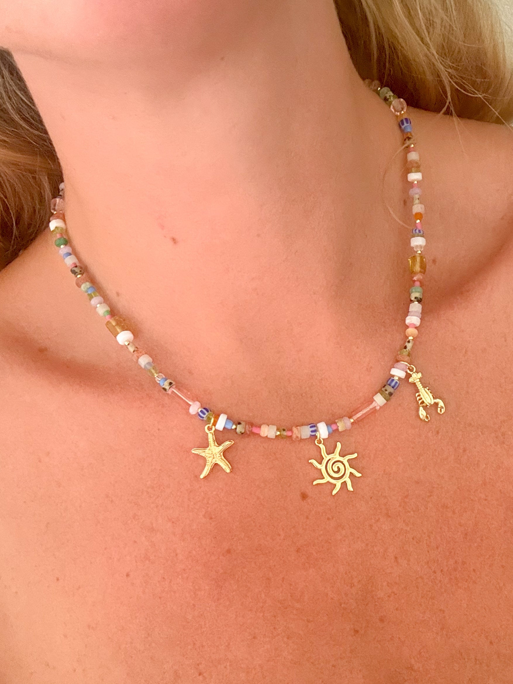 The Harper - Charm Necklace (2) features a unique bead arrangement, with slight variations in bead detail while maintaining the same carefully selected beads and charms as its sister. This subtle difference adds an exclusive touch, enhancing the necklace’s refined aesthetic and craftsmanship. Ideal for those who appreciate expert design nuances in elegant jewellry pieces.